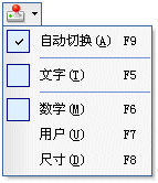 有关输入文字和文字对象的很多的内容,可能不用专门学习。如果您曾经使用过 MS-Word, 那么在 EduStudio 中,也按照类似的方法进行操作即可。EduStudio 是一种以文字和文字对象(如公式体)混合流为基础的字处理软件,它自带公式输入功能。相信大多数用户都使用过 MathType 等公式编辑器,那么在 EduStudio 中所要做的操作也基本相同,但不是从程序外插入,而是直接在程序内添加即可。然而,有那么一点点的内容您还是需要掌握,尤其是“文字输入模式”。 在“常用”工具栏,点击“模式切换” EduStudio