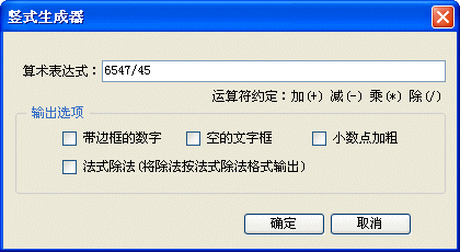 在“插入”菜单,单击“竖式”命令,打开“竖式生成器”对话框。