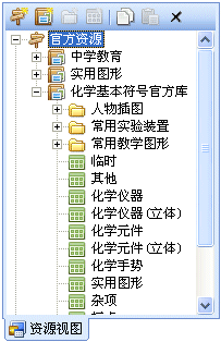 资源视图由树式列表框构成,以目录形式保存和管理文字、图形等用户的资源,主要由“分类”