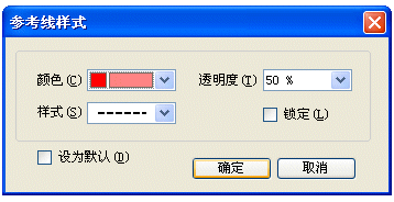 在对话框,可以设置参考线的颜色、透明度以及线形等,也可以锁定参考线。