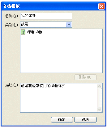 在菜单选择“文档 | 另存为文档模板”命令。此时将弹出如下对话框: