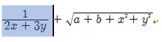 将插入点设置到字符“2”之后,按住鼠标左键移动光标到“3y”之后,可以看到已经选择了“x+3y”部分。这里没有发生任何调整。